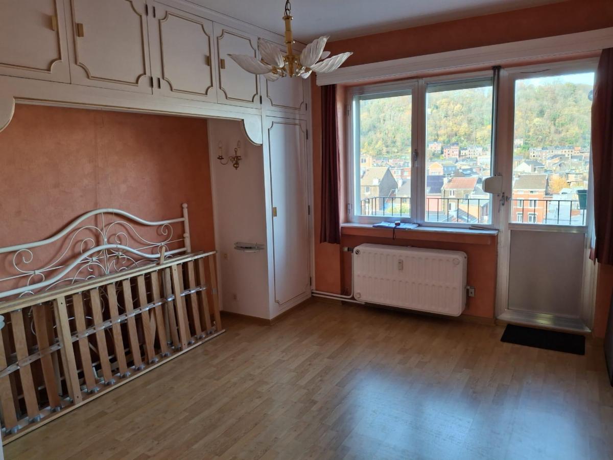 Celui-ci se compose d'un hall d'entrée, de 2 chambres dont 1 avec balcon, une salle de bain, un wc séparé, une cuisine équipée et un séjour avec vue sur Meuse, une cave et la possibilité de louer un emplacement de parking en s'adressant au syndic.
