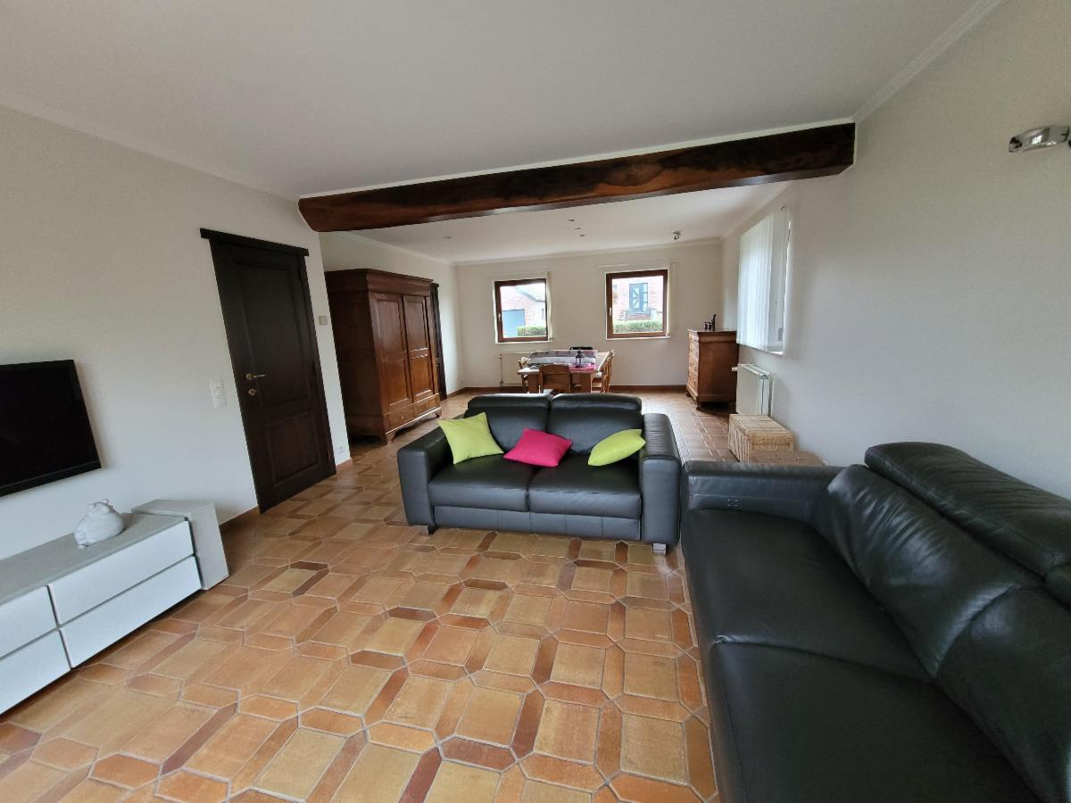 - Grand living traversant avec porte-fenêtre ouvrant sur la terrasse